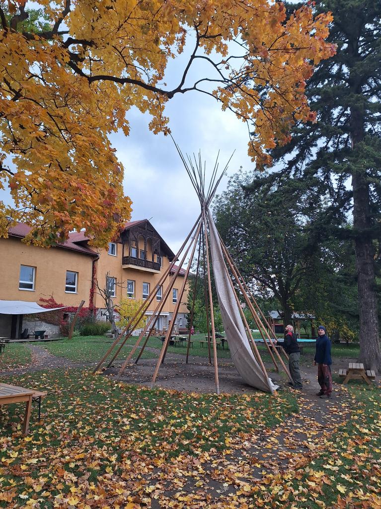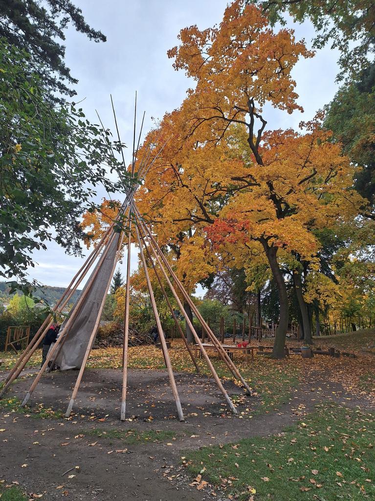 Naše týpí už je opět rozloženo a odpočívá v přírodní učebně. Děkujeme Grygarům, Šlechtům a Válkům, kteří nám pravidelně se stavbou a uložením tohoto indiánského obydlí pomáhají.