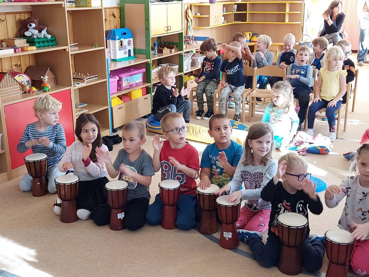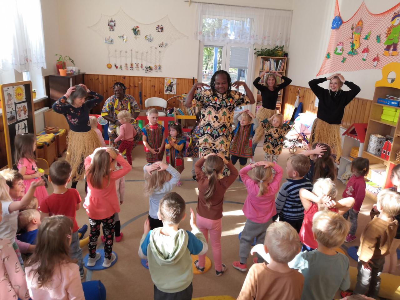 Tradičně k nám do školky zavítala skupina Emongo z Afriky, se kterou si děti zabubnovaly a zatančily.