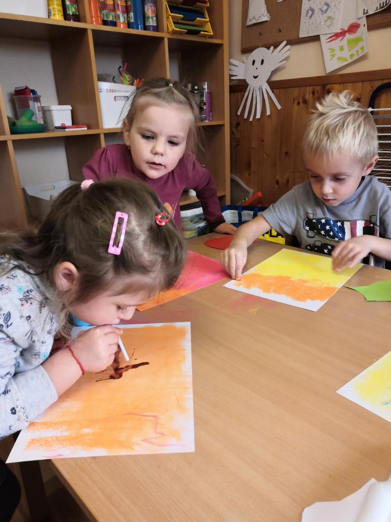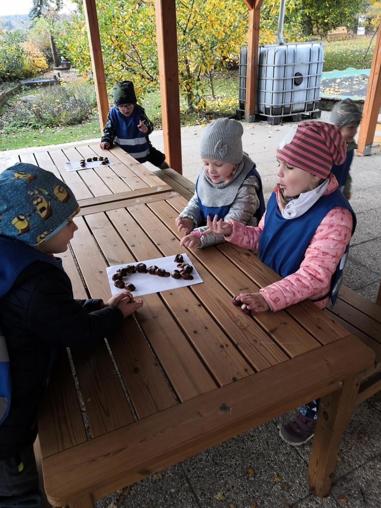 V listopadu jsme pozorovali změny v přírodě, otiskávali listy a počítali kaštany. Začalo první nacvičování na besídky.