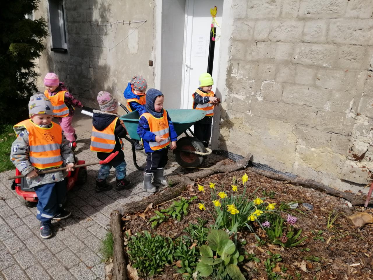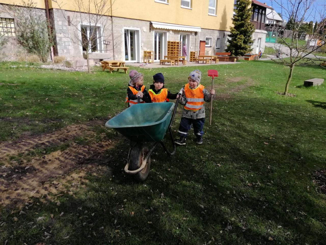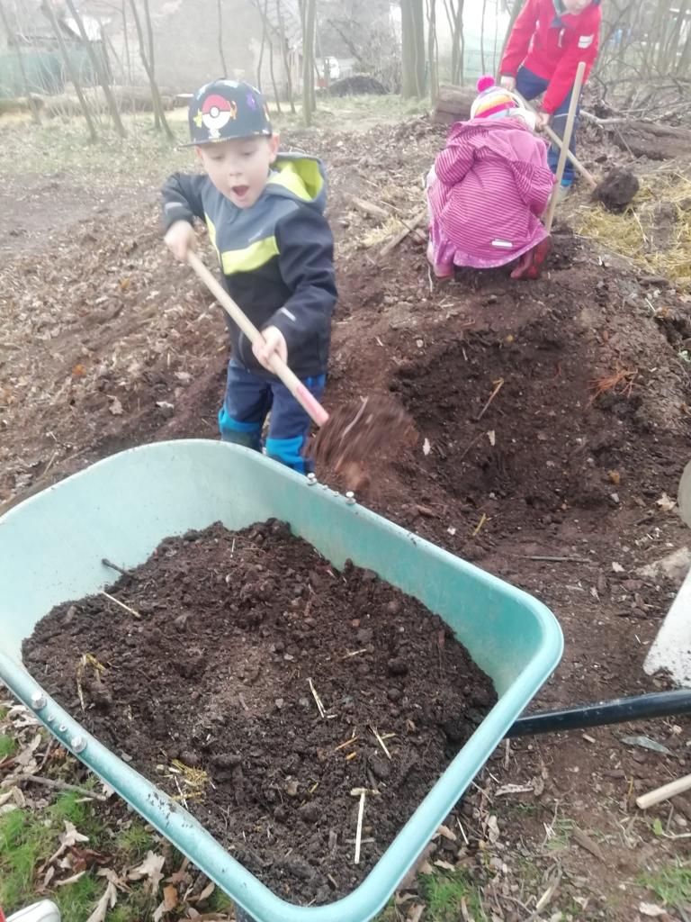 V dubnu se mulčovalo, navážela se utvořená hlína z kompostérů a sázela se semínka zeleniny.