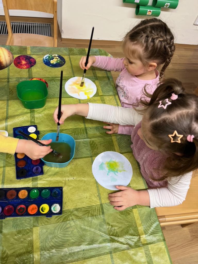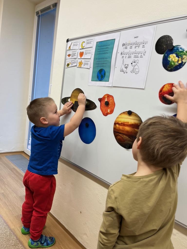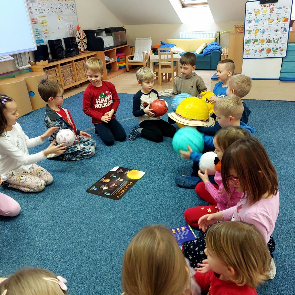 V lednu jsme si užili sněhových radovánek a povídali si o zimně a vesmíru.